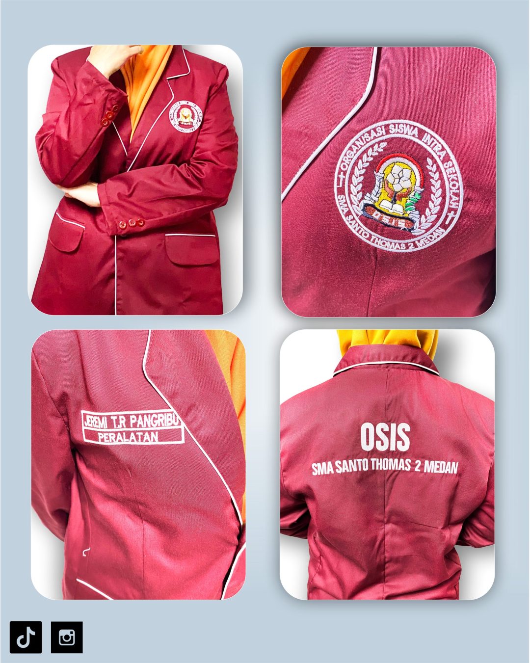 Custom Bordir Jas Almamater berkualitas tinggi dengan desain elegan, jahitan rapi, dan hasil presisi. Tampilkan identitas lembaga anda dengan profesional!