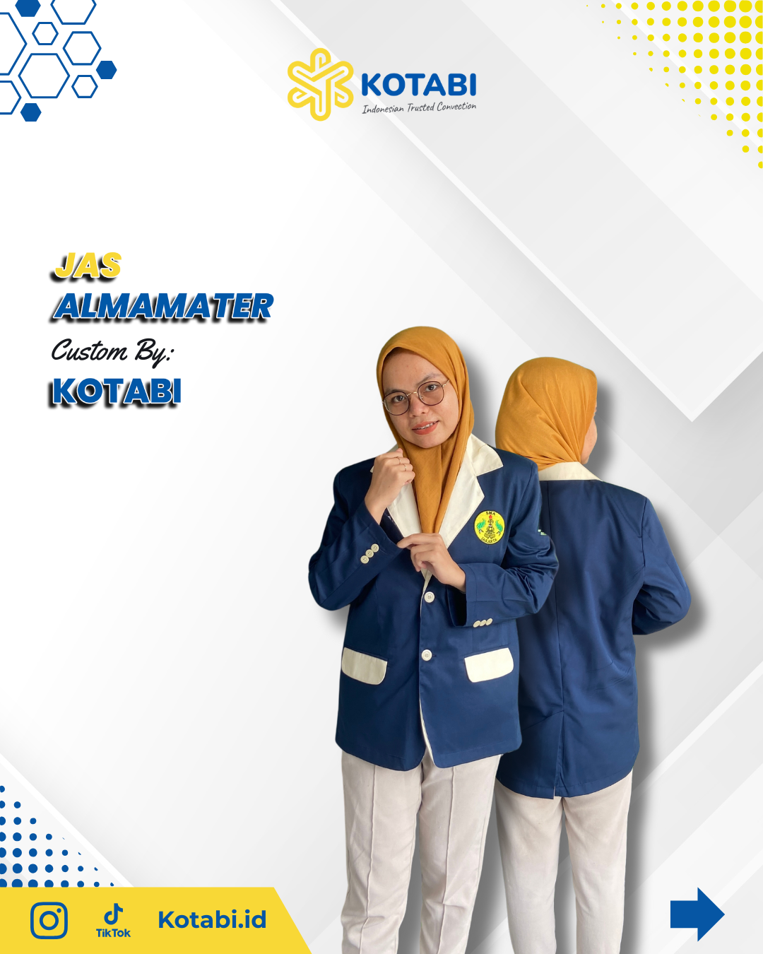 Kualitas jas almamater mahasiswa menjadi prioritas utama. Bahan yang digunakan lembut namun kuat, mudah dirawat, dan nyaman dipakai. Jahitan presisi memastikan jas awet, tidak mudah robek, dan tetap terlihat rapi setelah sering digunakan. Desain dapat disesuaikan dengan kebutuhan kampus, termasuk warna, motif, dan tambahan logo. Memesan jas melalui penyedia terdekat di Cilandak memungkinkan proses lebih cepat dan efisien. Minimal pemesanan 24 pcs, cocok untuk keperluan angkatan, organisasi kampus, atau acara resmi. Cara pesan: tentukan model dan ukuran, pilih bahan, lalu lakukan konfirmasi melalui kontak resmi kami.