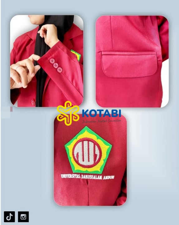 Konveksi buat jas almamater custom depok dengan desain elegan, bahan berkualitas, jahitan rapi, dan layanan profesional minimal pemesanan 24 pcs.