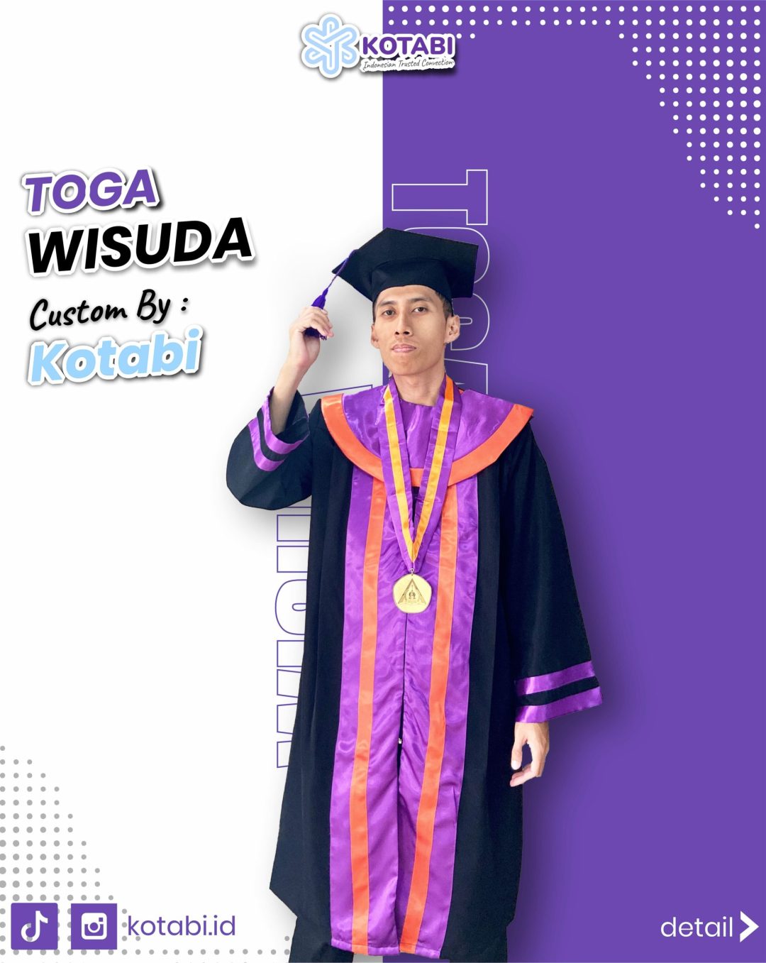 Kualitas menjadi prioritas utama dalam setiap toga yang kami hasilkan. Jahitan presisi dan penggunaan teknik produksi modern menjadikan toga lebih tahan lama dan tampak profesional. Kami memastikan setiap hasil akhir sesuai dengan standar tinggi yang diharapkan pelanggan. Dengan demikian, toga tidak hanya indah dipandang, tetapi juga kuat dan rapi.